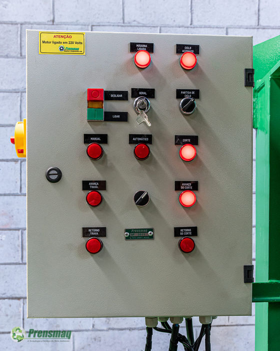 Equipamento utilizado para picar sucata ferrosa e perfil de alumínio, com operação automática ou manual, através do pedal de acionamento.